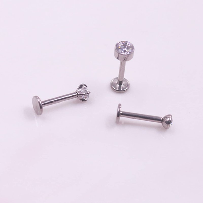- Product Style:3PCS CZ Top Push in Threadless G23 Titanium Flat Back Stud for Nose.If the product is loose, insert the upper end into the base and bend it slightly.