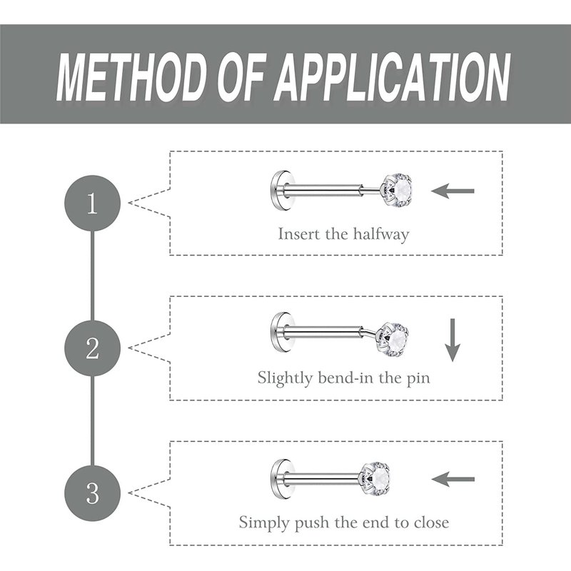 - Product Size:1.2mm/16G,rod length 6mm/8mm,CZ size:2.5/3/4mm.So many stud piercings give you more choice to meet daily wear,make your life more colorful.