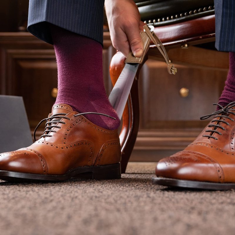 - Leather Grip Handle - The leather handle of the metal shoe spoon aids in gripping and adds a touch of elegance. With the leather strap at the end, the long-handled shoehorn can be hung in a convenient location for easy access.