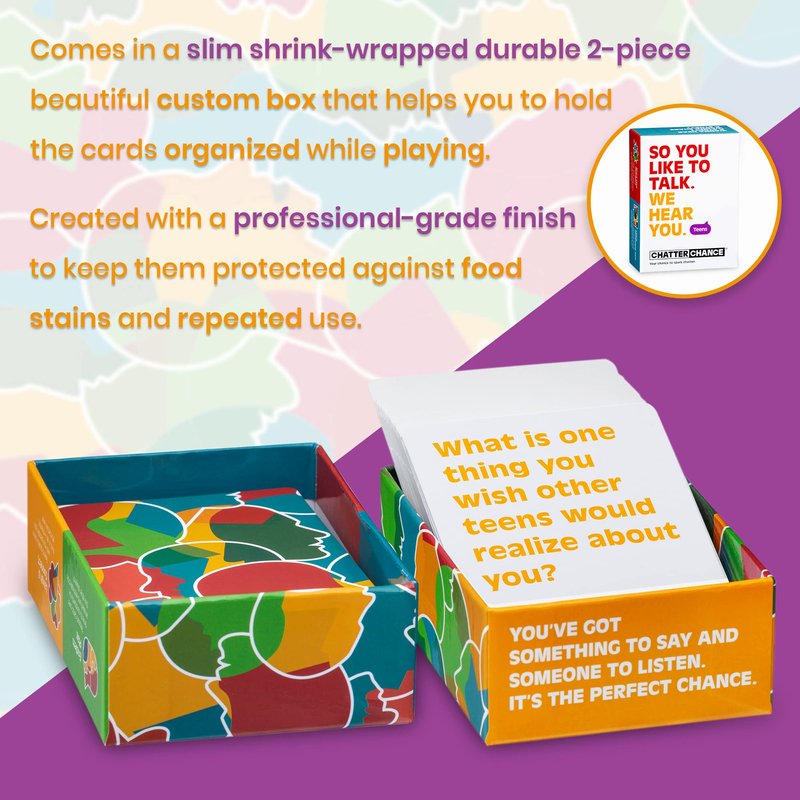 ChatterChance Conversation Starter for Teens | Exciting, Fun Conversation Games with Question Cards That Spark Connection & Understanding | Thought-Provoking Card Games for Teens with 80 Questions