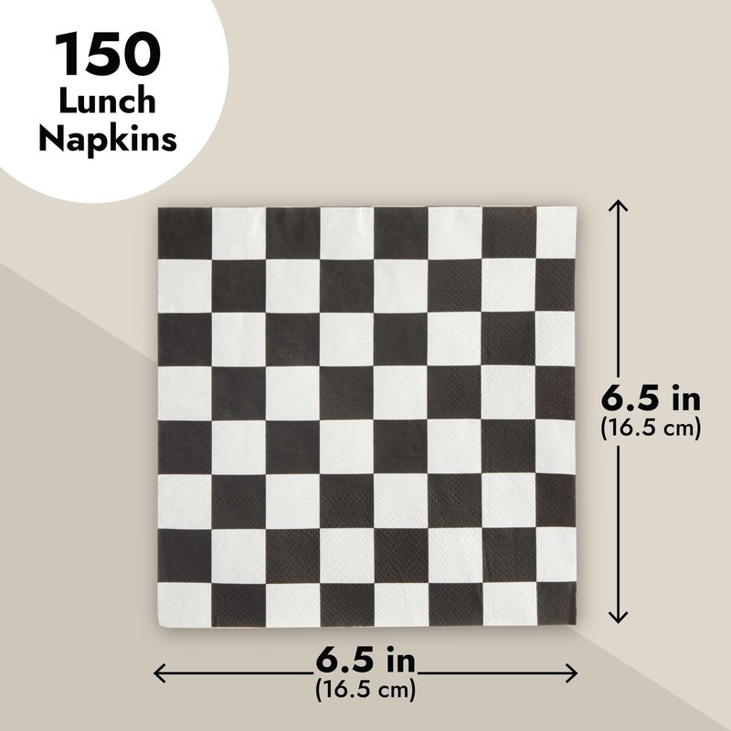 Checkered Flag Paper Napkins for Race Car Birthday Party (6.5 x 6.5 In, 150 Pack)