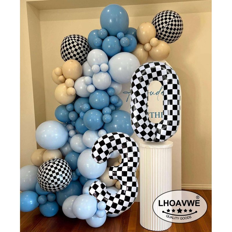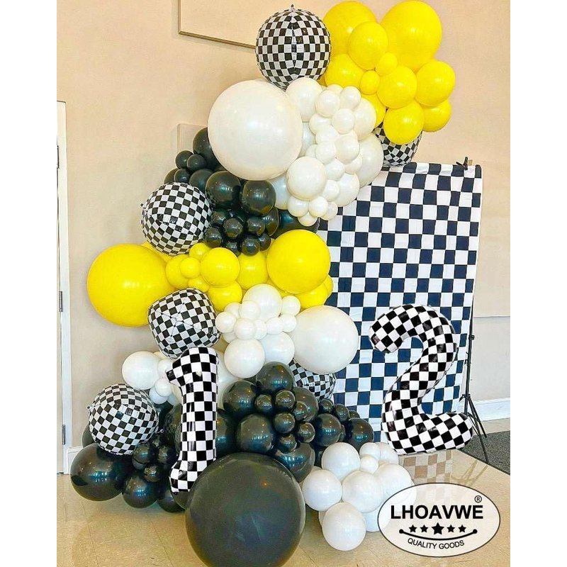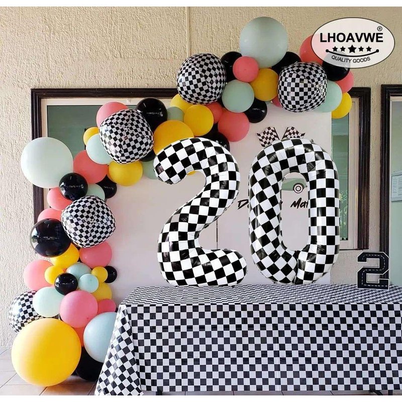 - Material: Racing Checkered Number Balloons made with high quality aluminum foil., not easy to explode and leak, bright colors, full of numbers.