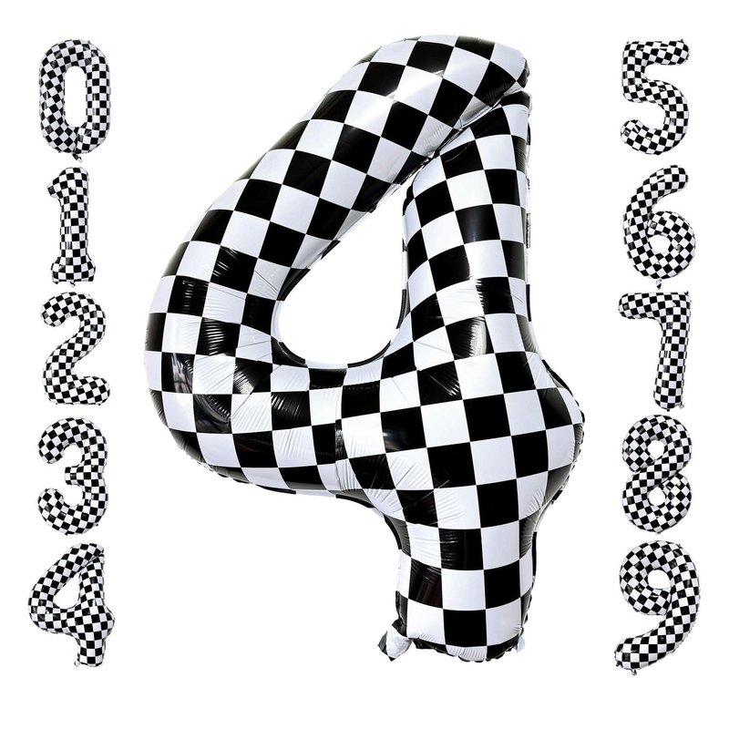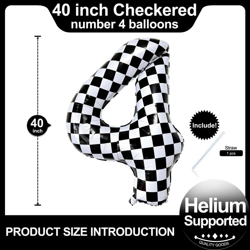 - Package Included:40 inch Race Car Checkered numbers 4 + 1 Straw,Race Car Checkered 4 number foil digital balloons are the best for birthday party, wedding celebration, anniversary, ceremories celebration, business or big events party.