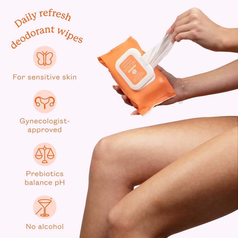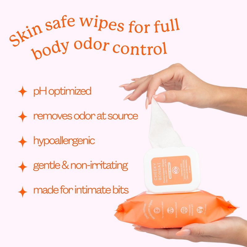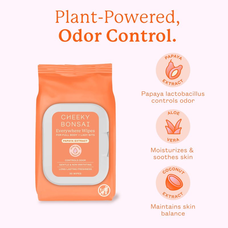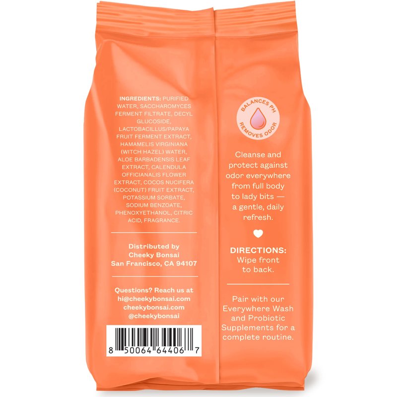 Cheeky Bonsai Feminine Full Body Wipes - Removes Odor - pH Balanced - Gentle on Sensitive Skin - No Dyes or Parabens - Hypoallergenic - Gynecologist Approved - 30 Count