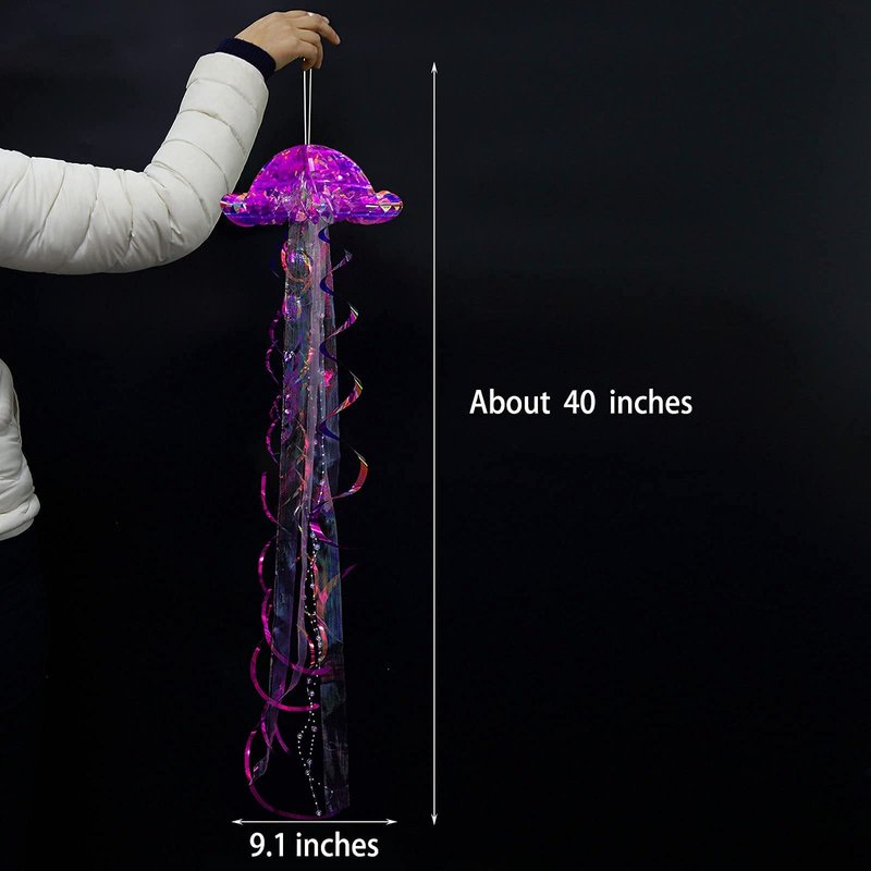 - 【MARVELLOUS DESIGN】 The Purple iridescent jellyfish are gorgeous, lustrous decorations for under the sea parties, mermaid birthday themes, or ocean-themed events. These uniquely designed jellyfish decorationsmimic the beauty of ocean creatures like sea horses with swaying tentacles and a polychromatic surface that radiates rainbow colors. They’re perfect for sea party decorationsand baby shark theme party decorations..