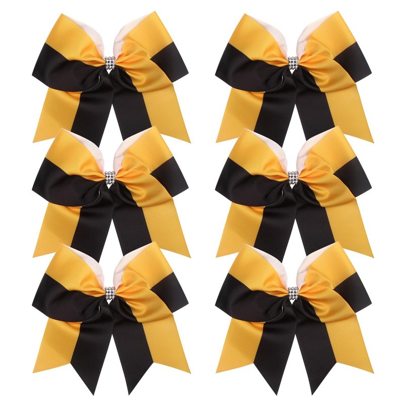 Cheerleader Bows 8 Inch Comb Color Ponytail Holder with Bling Fling Rhinestones Hair Tie Cheerleading Bows 6 Pcs (Black/Gold)