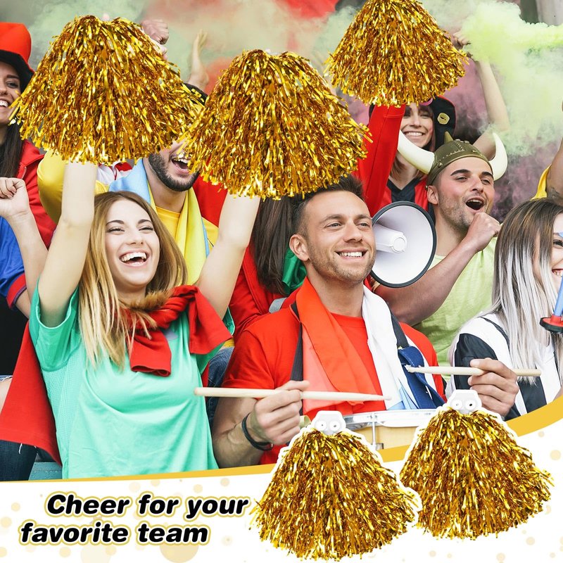 - Sufficient to Use or Share: the package contains 4 pieces of cheerleading pom poms in bright gold color, designed with plastic ring handles, enough to meet your cheering needs, and you can share them with cheerleaders