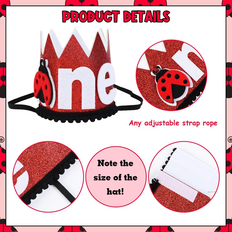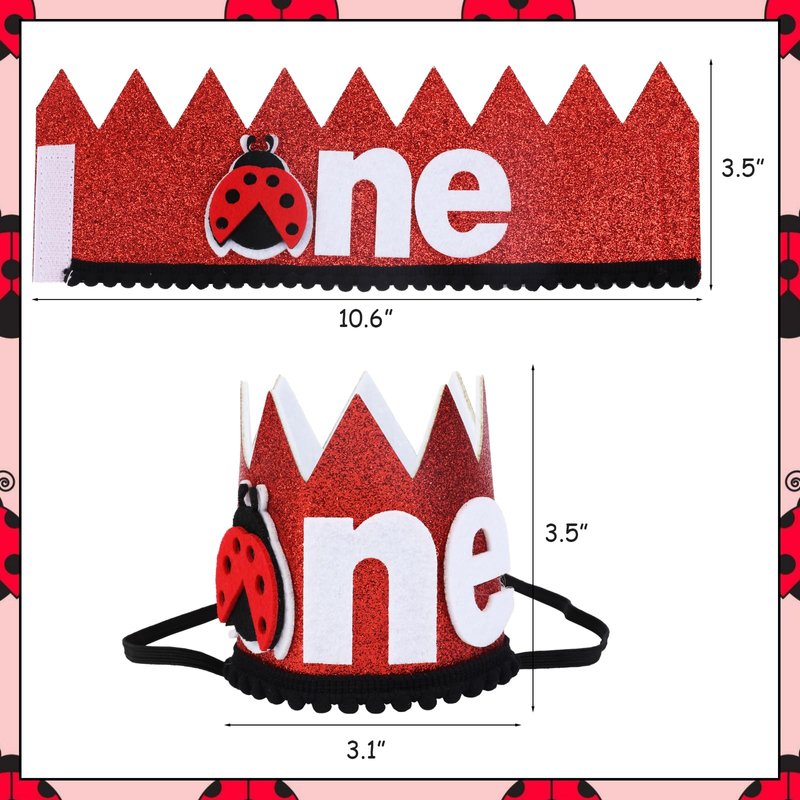 - Package Included: You will get 1 birthday hat with “one” printed on it and the letter “O” is a ladybug pattern, which will make your life more interesting. The size of this ladybug 1st birthday hat is approximately 3.46*3.11 inches, which is suitable for your baby’s hat.