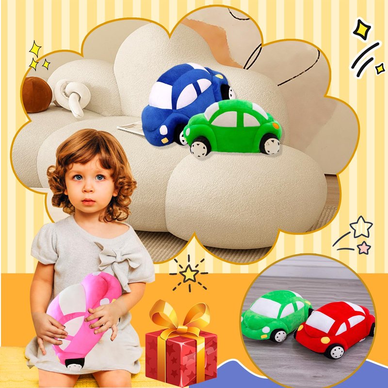 - [Wide use]: This 3D realstic car plush is very soft in touch feel, and can be used for playing or sofa cushion or cake decoration cak topper or home decoration car decoration. Suitable for theme parties, birthday party gifts, sock fillers, baby showers, etc. Use this hug car stuffed animal for kids to make your theme party a special party.