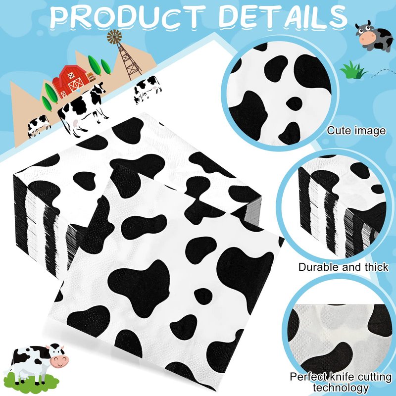 - Lovely Cow Print Design: these animal beverage napkins adopt cute and delicate cow print design, vivid and eye catching, easy to add energy and atmosphere to your party, providing you with a good mood when you are using