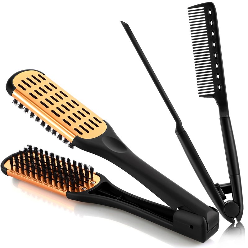- Practical Tools: featured with the double sided design, the boar bristle straightening brush applies the clamp shape, which offers much convenience for you to straighten your hair; And when you are using a flat iron, the V shaped styling hair comb can protect your hands from scald, by helping fix your hair in place