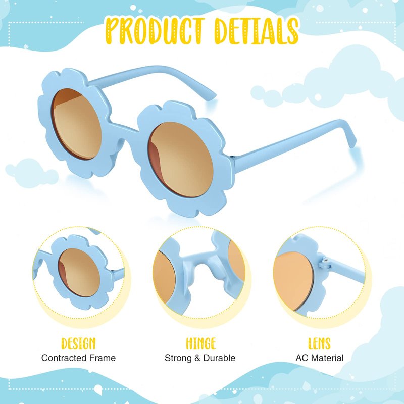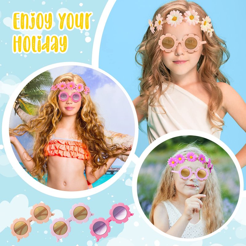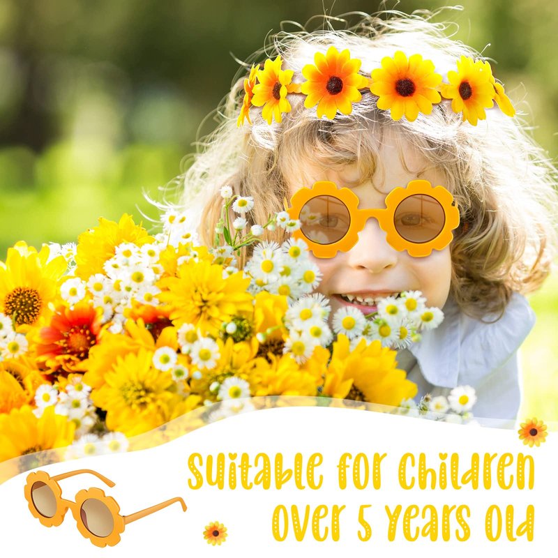- Reliable and Comfortable: our sunflower headbands are made of quality polyester fibers, and kids hippie glasses are made of quality AC and PC materials, skin friendly and not easy to break, each pair of sunglasses is lightweight and comfortable, allowing your child to wear without burdens