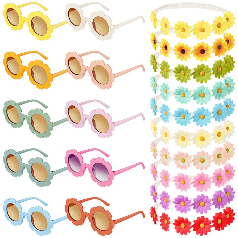 - Nice Combination Set: we will provide you with 10 pieces hippie glasses, 10 pieces flower headband, each comes with 10 colors, sufficient in styles and colors to meet your daily requirement of using, replacing and sharing