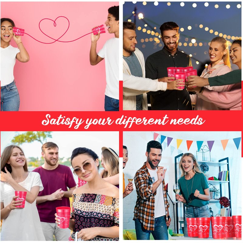 - Extensive usages: you can use these red plastic cups to hold drinks at Valentine's Day parties, or as desktop storage cups to place snacks; Or use them for fun party activities, for example, throwing a table tennis ball into the cup, which can enliven the atmosphere throughout the Valentine's Day party