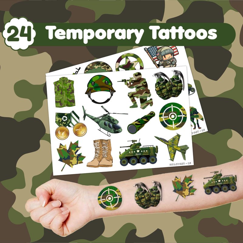 - Style: Military Temporary Tattoos; Birthday Party Supplies; Birthday Decorations; Party Favors;