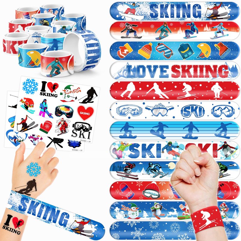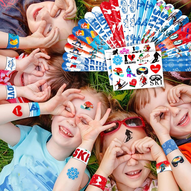 - šćPERFECT GIFT FOR SKIING ENTHUSIASTSć: Our Skiing Temporary Tattoos and Slap Bracelets are the perfect gift for people of all ages, from kids to adults. Suitable for any occasion, they offer an affordable and delightful option. Whether for school events, birthdays, or stocking stuffers, this Skiing themed collection adds a fashionable and nostalgic element to anyone's accessory collection, invoking happiness and cherished memories.