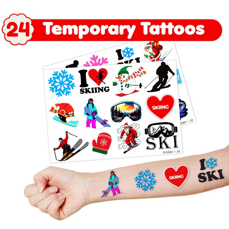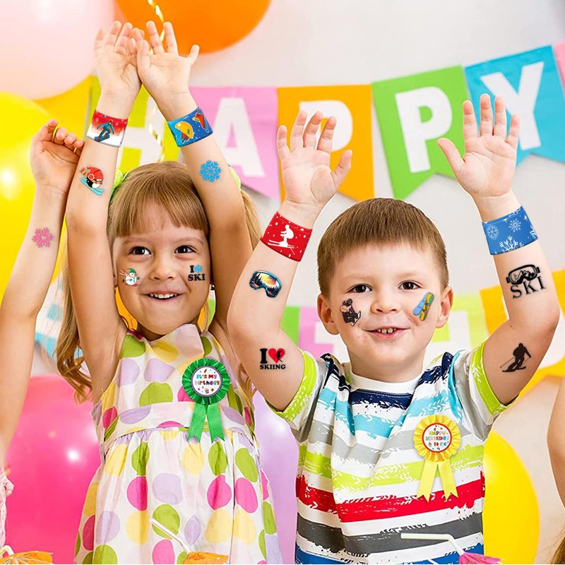- Style: Skiing temporary tattoos; Skiing party favors; Skiing birthday party supplies; Skiing birthday decorations; Skiing slap bracelets