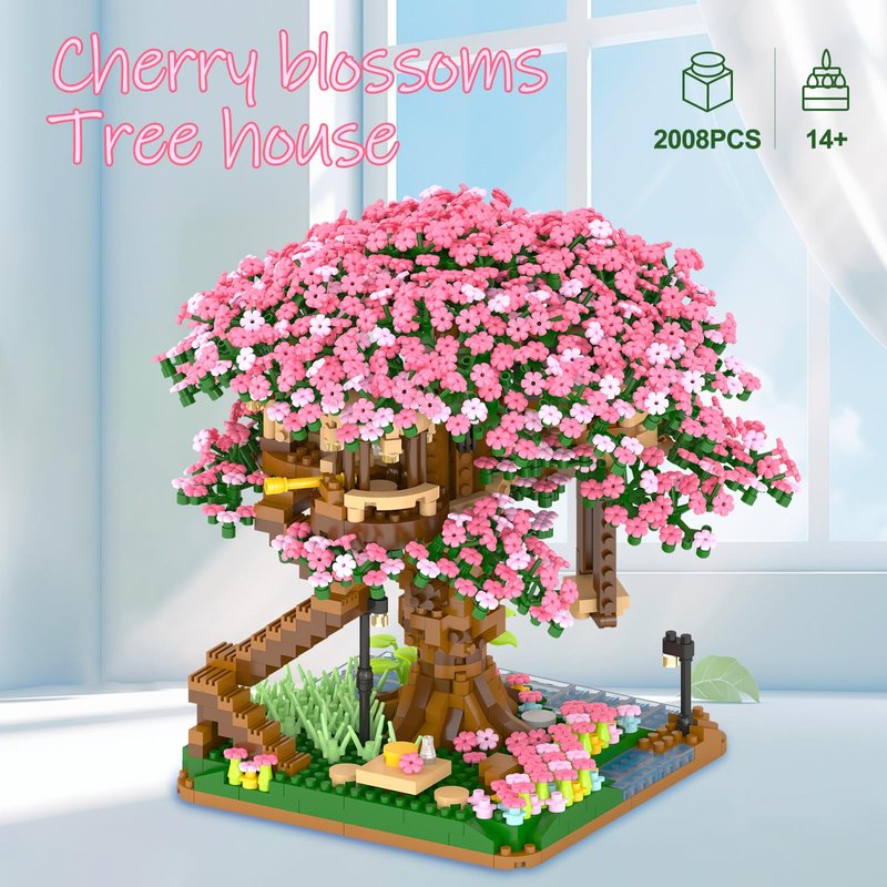 - Cherry Blossom Flower Building Sets: consist of 2008 mini building blocks, the cherry blossom tree and the hut are cleverly combined, and the cherry blossom blocks are beautiful, bright and lush; The product also has stairs leading to the ground, and there are ponds, street lamps, stone paths, flowers and plants under the trees, creating a dreamlike scene