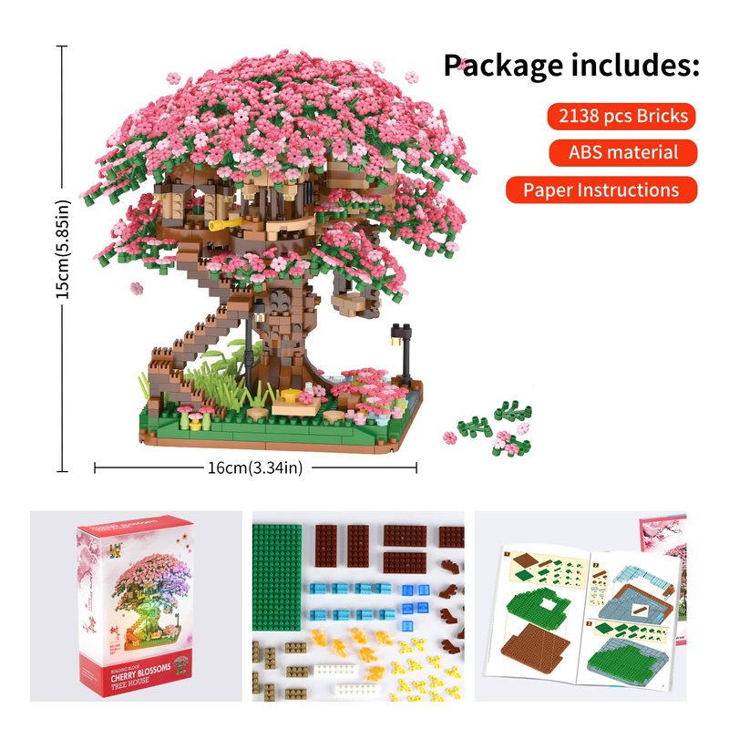 - High-Quality, Safe Play:The Cherry Blossom Tree House Block Set Crafted with premium ABS materials, ensure smooth, burr-free pieces. Non-toxic and odorless, they guarantee safe play for your child.