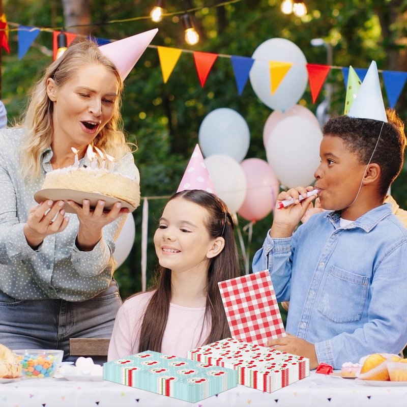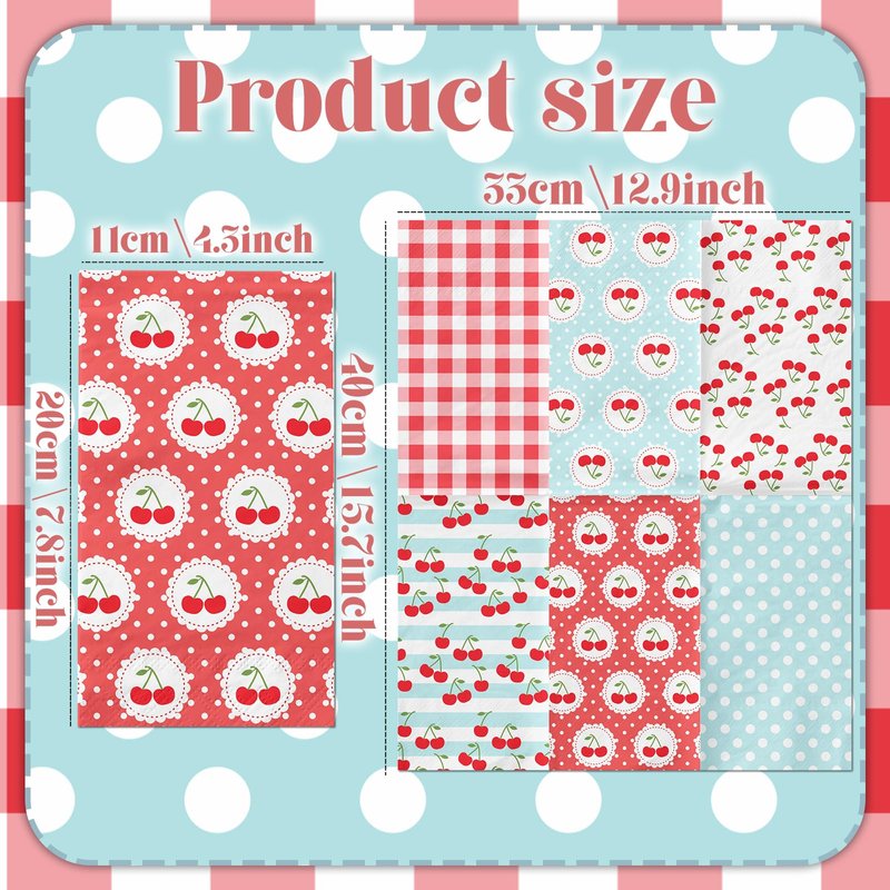 - 【VALUE PACKAGE】You will receive 40pcs cherry party decorations napkins set, that measure 6.5" x 6.5" (folded) and 13" x 13" (unfolded).Our cherry decorations napkins design is mainly based on cherry patterns, combined with red and blue grid ripple elements. Decorate your party with these cherry sets to create a cute and fun atmosphere