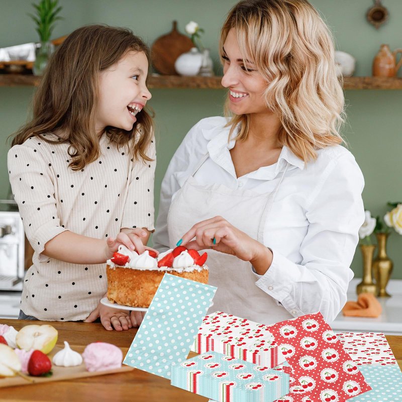 - 【QUALITY MATERIAL】Our cherry napkins are made of quality paper, each cherry paper napkins has 2 layers, which is soft, comfortable, and have good water absorption, are not easy to tear or fade when applied, and are convenient to use.these cherry napkins sufficient quantity and various styles are enough for your needs and daily sharing
