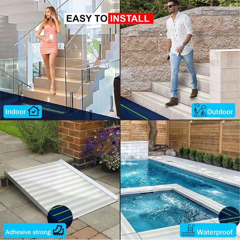 - Made for your safety: Our adhesive non slip grip tape is designed specifically to make your home safe for you and your family. Glow in the dark tape Superior anti skid tape for steps outdoor creates a safer environment for walking, working, stepping and standing. Reduce the risk of falls, trips and slips for your loved ones, especially the elderly, children and pets. reflective tape outdoor waterproof.