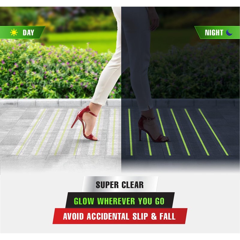- Don’t compromise on beauty: Cost-effective, multi-functional clear safety product. Anti Slip Safety Tape with Glow-in-the-Dark Strip.Use In low light conditions where visibility is low, the glow in the dark strip will help guide people, while keeping the beauty of your original surface. photoluminescent strip can be charged by either natural or artificial light sources. Glow in the dark clear stair treads for wooden steps indoor and outdoor to maintain efficient safety levels at all times.