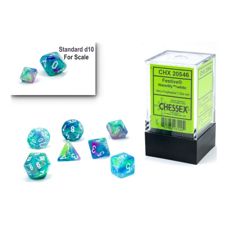 Chessex Dice Set – 10mm Festive Waterlily/White Polyhedral Dice Set – Dungeons and Dragons D&D DND TTRPG Dice – Includes 7 Dice - D4 D6 D8 D10 D12 D20 D%,CHX20546