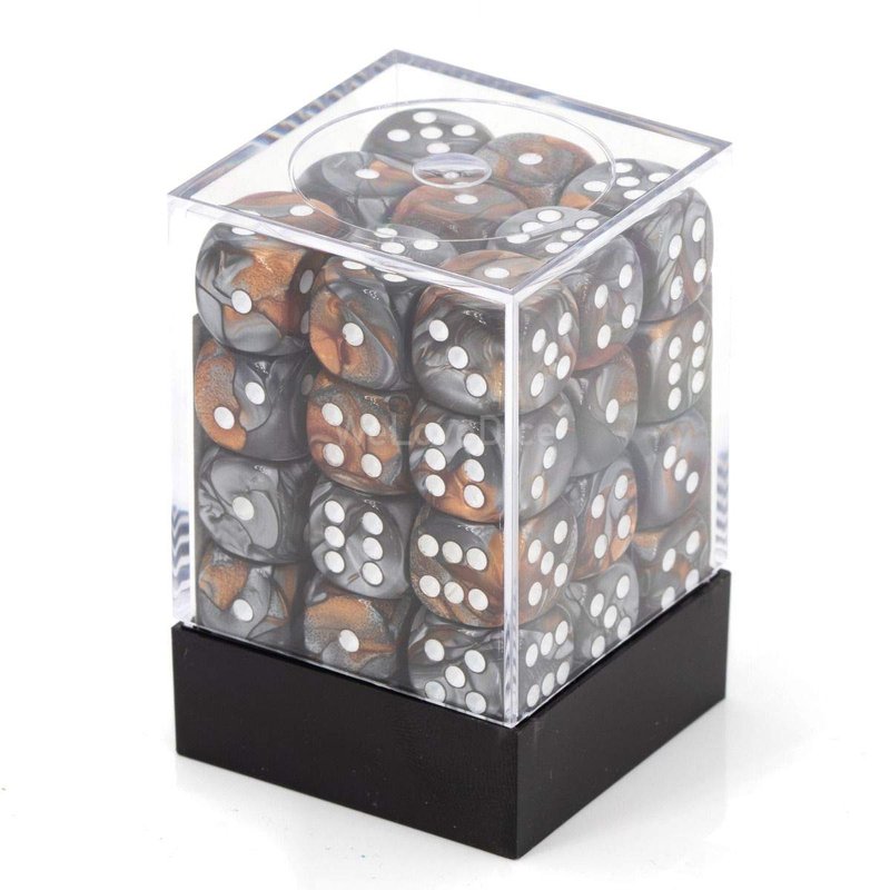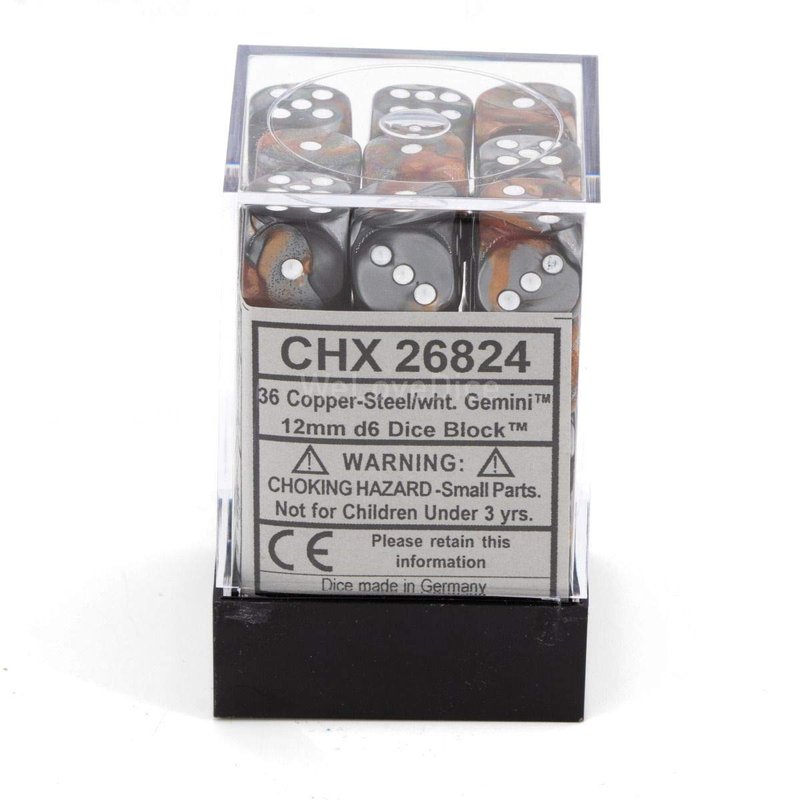 Chessex DND Dice Set D&D Dice-12mm Gemini Copper, Steel, and White Plastic Polyhedral Dice Set-Dungeons and Dragons Dice Includes 36 Dice – D6 (CHX26824)