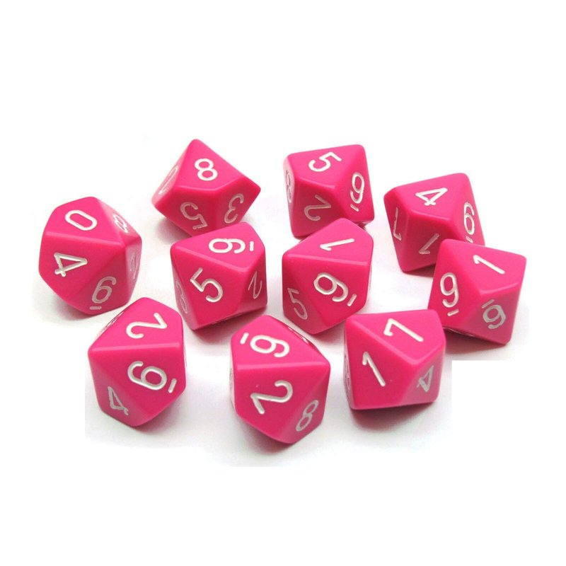- Pink Opaque Dice with White Numbers D10 Aprox 16mm (5/8in) Set of 10 Chessex