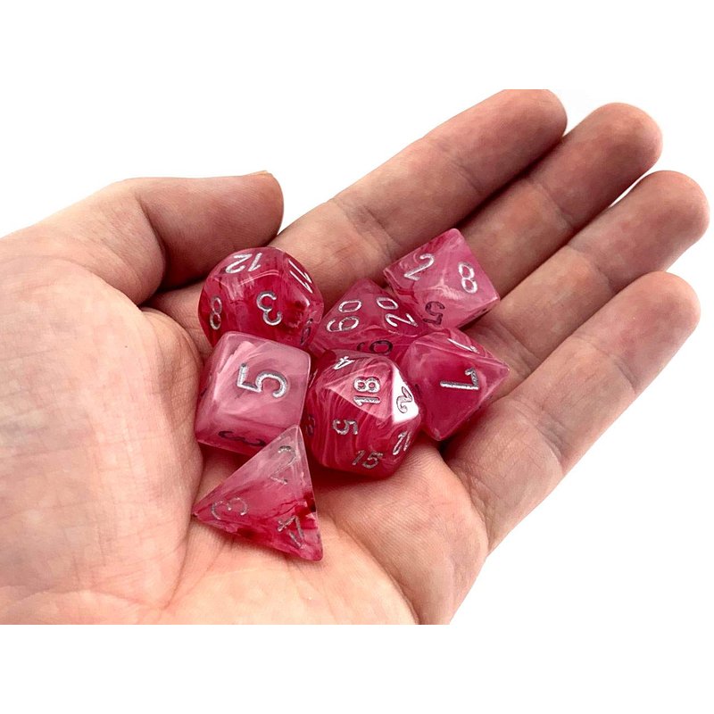 - Pink Ghostly Glow Dice with Silver Numbers 16mm (5/8in) Set of 7 Chessex