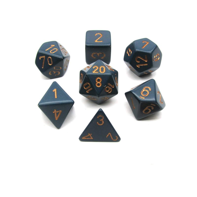 Chessex Polyhedral 7-Die Opaque Dice Set - Dusty Blue with Copper Numbers