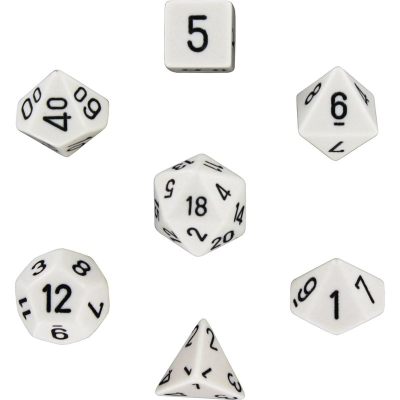 Chessex Polyhedral 7-Die Opaque Dice Set - White with Black