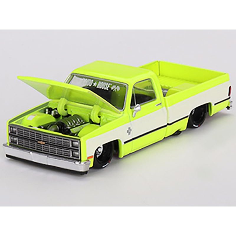 Brand new 1/64 scale diecast car model of Chevy KAIDO V1 Pickup Truck Flo Yellow and White (Designed by Jun Imai) "Kaido House" Special die cast model car by True Scale Miniatures KHMG112