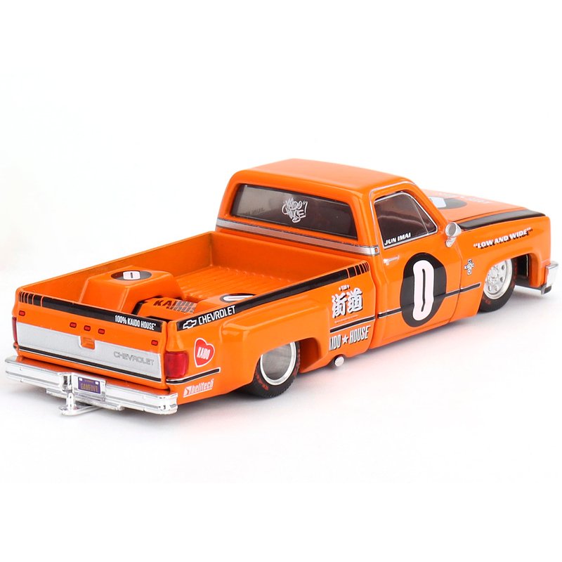 Chevy KAIDO Works V2 Pickup Truck #0 Orange with Graphics (Designed by Jun Imai) Kaido House Special 1/64 Diecast Model Car by True Scale Miniatures KHMG090