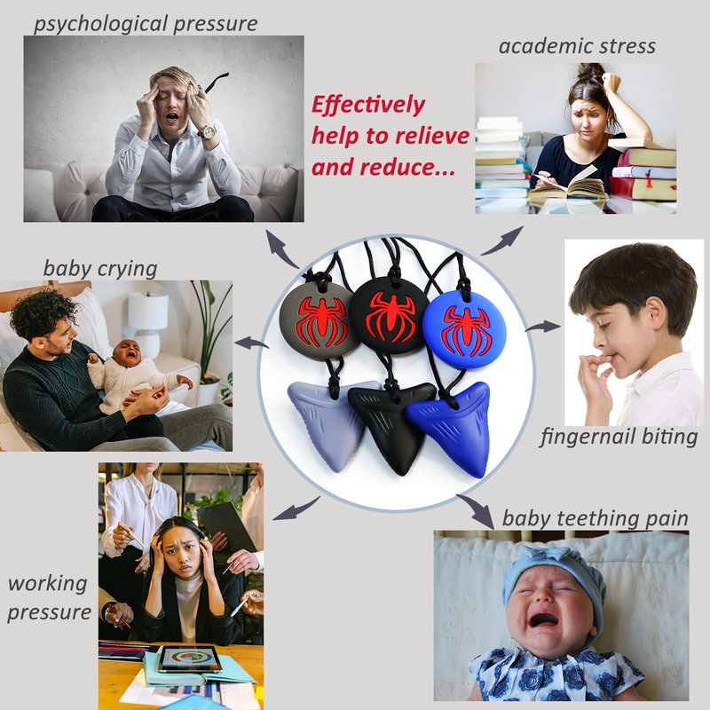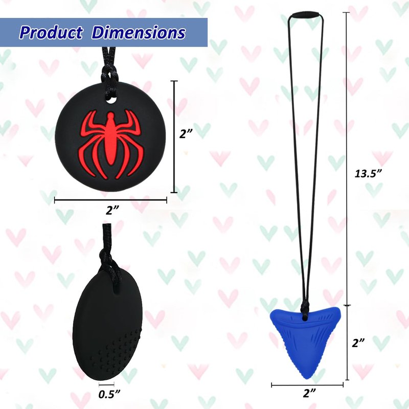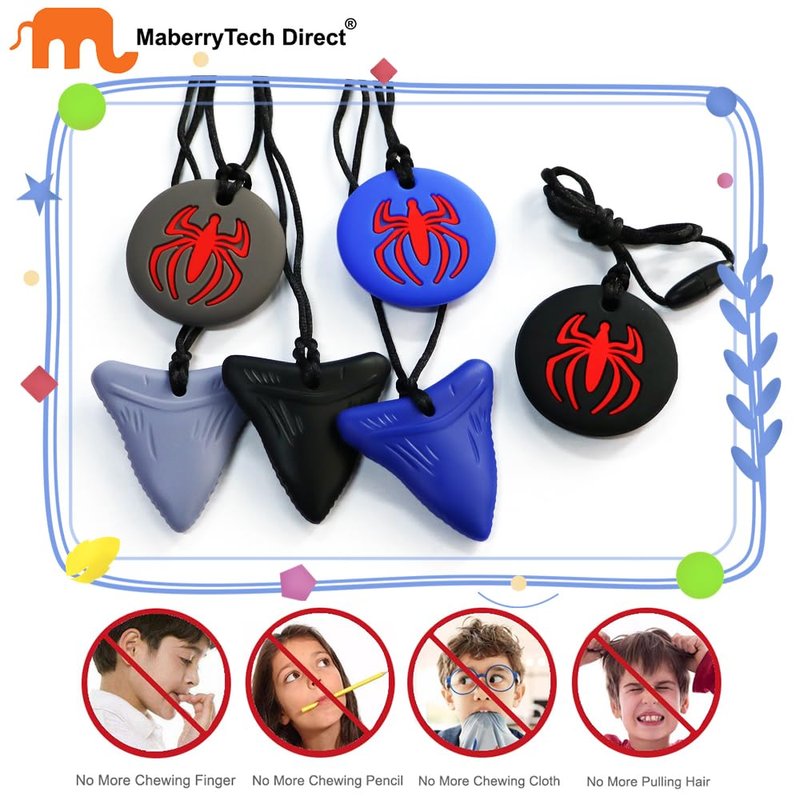 - ★ 6 PACK CHEW NECKLACE - Our chewy necklaces for sensory kids kit includes 3 pack shark tooth chewies & 3 pack spider chewies. Cool and stylish designs can greatly appeal to your children.
