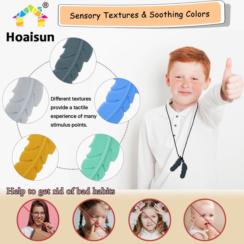 - ★Widely Applications - Hoaisun chewing necklaces come in a variety of styles, can be used for any age. Autism adult chew necklace can be used as a anxiety toys, or as an oral motor therapy tools for kids with autism. And it is also a very suitable toddler chew necklace, which can relieve the baby's teething pain, which will not hurt your baby's teeth.
