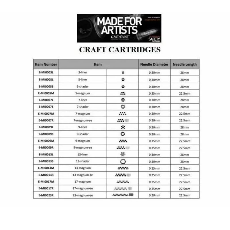 - HIGH-QUALITY TATTOO EQUIPMENT - Cheyenne has always been a leading provider of professional tattoo supplies in the industry. Our cartridge needles are made with the highest-grade material and revolutionary advancements.