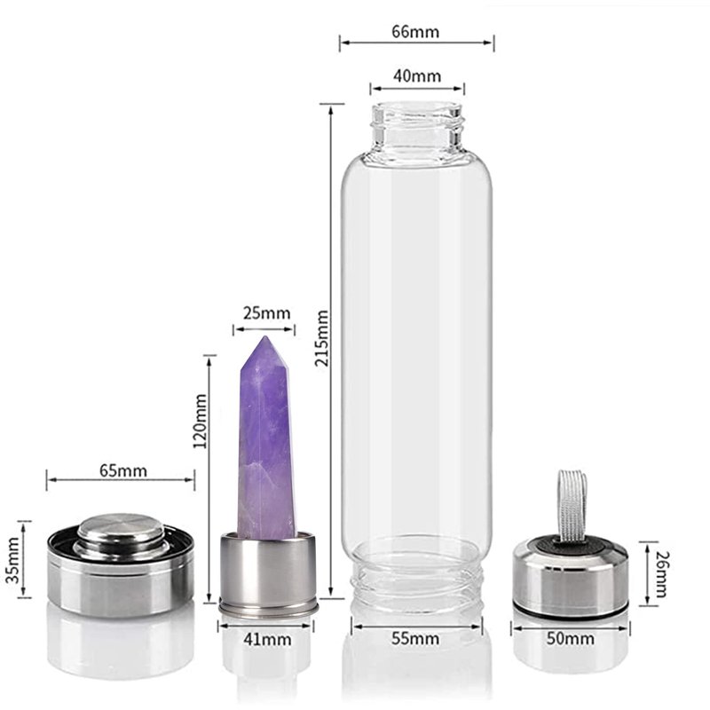 - MATERIAL - Crystal glass water bottle energy bottle is made with stainless steel and high borosilicate glass, suitable for hot or cold drinks, easy to clean. Natural crystal is rich in minerals. After running, exercise, yoga, dancing and meditation, it can provide trace minerals for the human body. In addition, this unique crystal bottle is an excellent choice even as a collection and decoration.