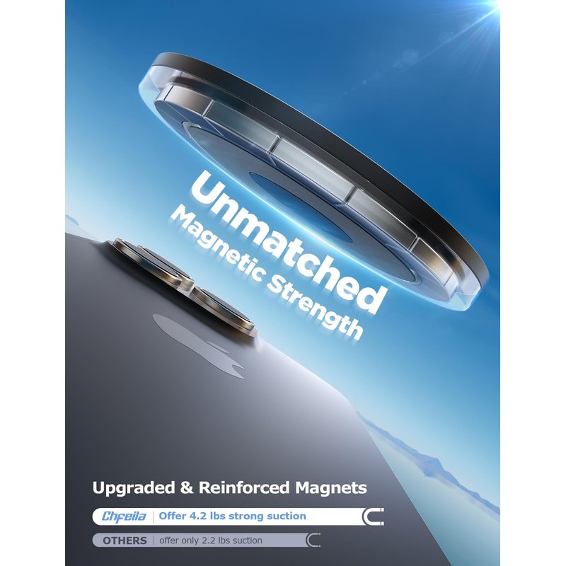 - 🎄【ENHANCE MAGNETIC SUCTION】Chfeila magnetic phone grip, fortified with 22 piece N55 NdFe magnets and a dual-circle construction, delivers unparalleled magnetic force. Capable of securely holding a bare phone weighing up to 4.2 lbs and a phone with a thin metal ring up to 8.8 lbs. The robust magnetic grip ensures your phone stays firmly in place, even during the most vigorous activities. Say goodbye to accidental drops and hello to peace of mind, giving you the confidence to use it with ease.