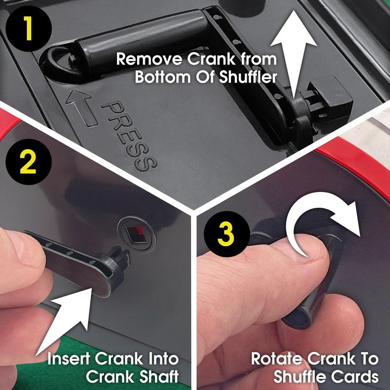 - Durable Construction: Made from high-quality materials, this hand-cranked shuffler is built to last. Its sturdy construction ensures reliable performance, game after game. Note: Playing cards are not included.