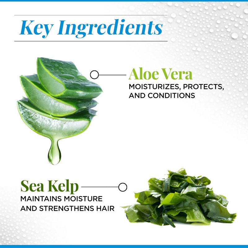 - KEY INGREDIENTS: Aloe Vera offers excellent conditioning properties and protection to hair while moisturizing dry skin. Additionally, Sea Kelp helps to maintain moisture and promotes healthier, strengthened hair.