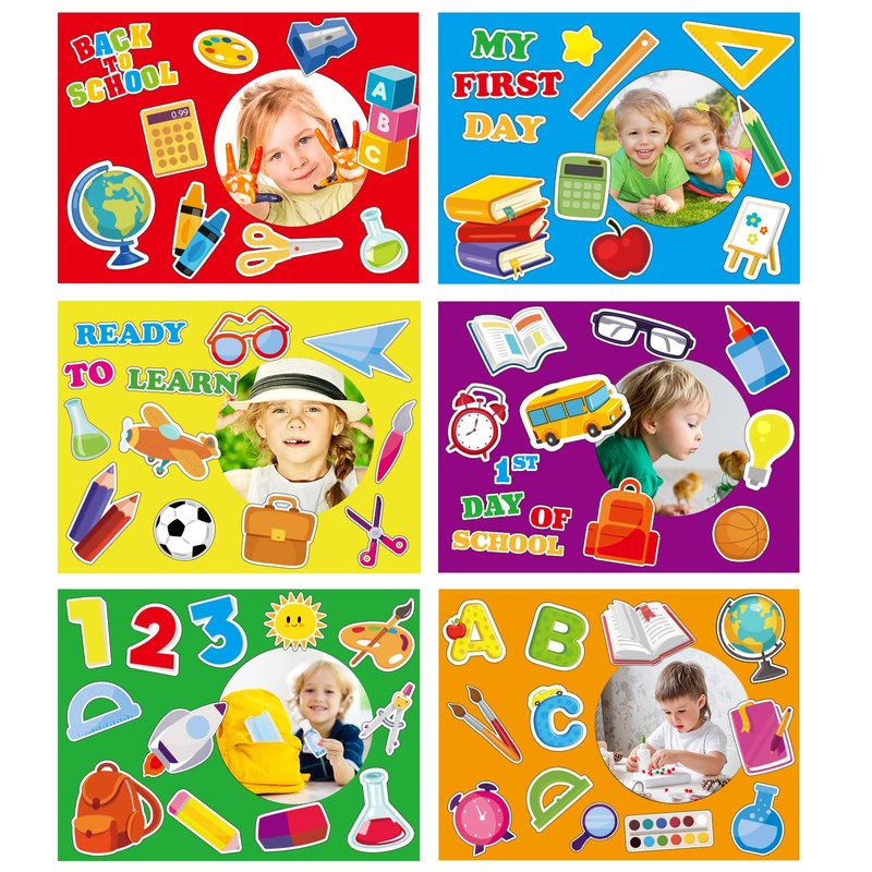 - 【Premium Material & Suitable Size】 Each back to school picture frame measures about 16 x 12cm/6.3 x 4.7inch with a 7cm/2.8inch picture shown space. Each sticker piece measures about 2cm-6cm/0.8-2.4inch.These well-printed kids happy back to school DIY art crafts kit are made of durable card and stickers.