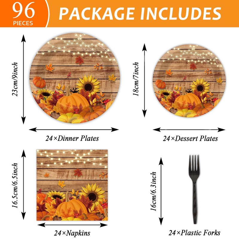 96pcs Thanksgiving Party Supplies with Paper Plates and Napkins, Fall Autumn Birthday Party Paper Tableware Set Table Decorations Favors Serves 24 Guests with Forks
