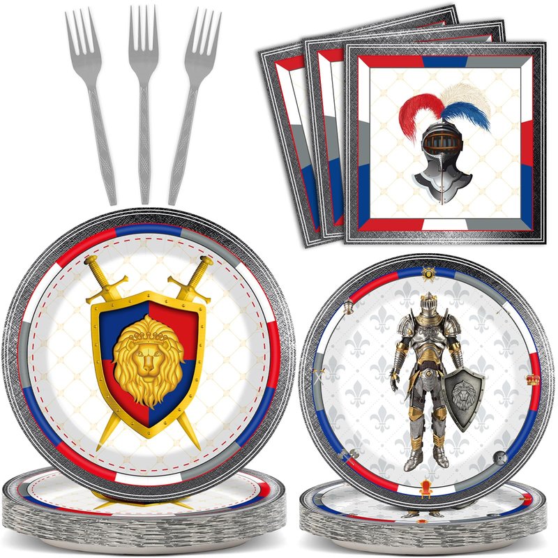 - 【Can Fit 24 Guests】With our high-quality plate, fork, and napkin sets, you will have enough products to cater to your birthday party or event. These Knight Castle Party Birthday Decorations Favors will make your dining table look more delicate and accommodate all guests, leaving a lasting impression on them.