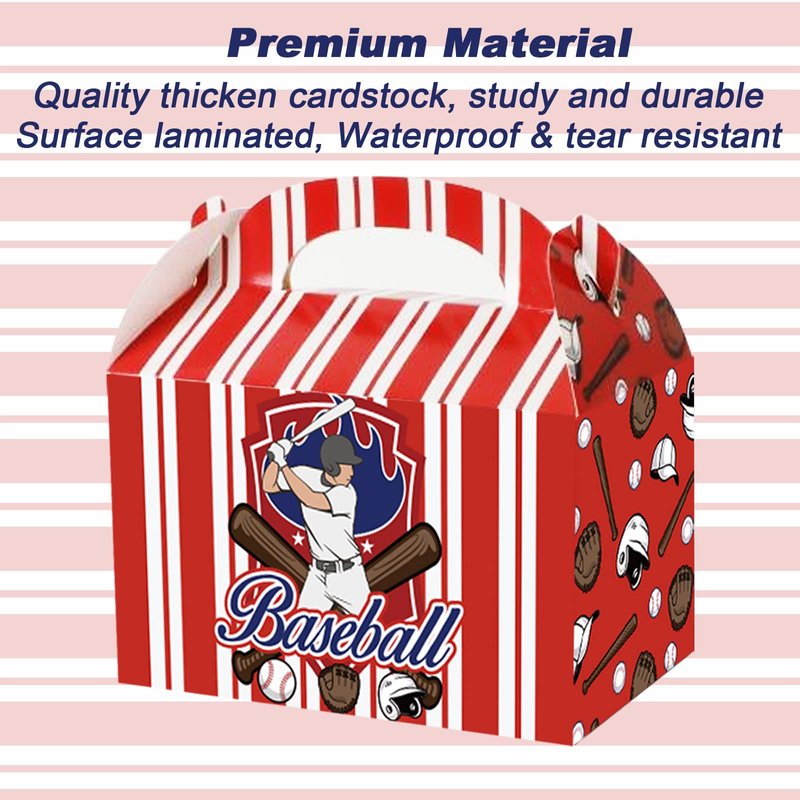 - 【Baseball Party Decorations】The baseball party box is designed in colorful patterns. We believe that kids will like these baseball party decors. And the baseball party boxes can fit well with your other baseball party decorations such as baseball party bags, baseball party banner backdrop, baseball party table kits, baseball party toys, and so on.