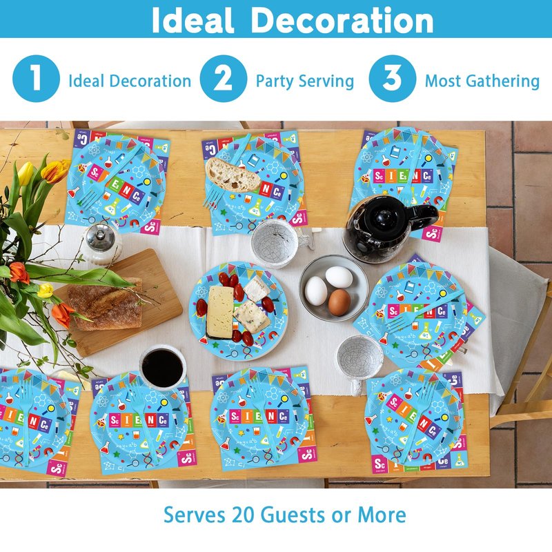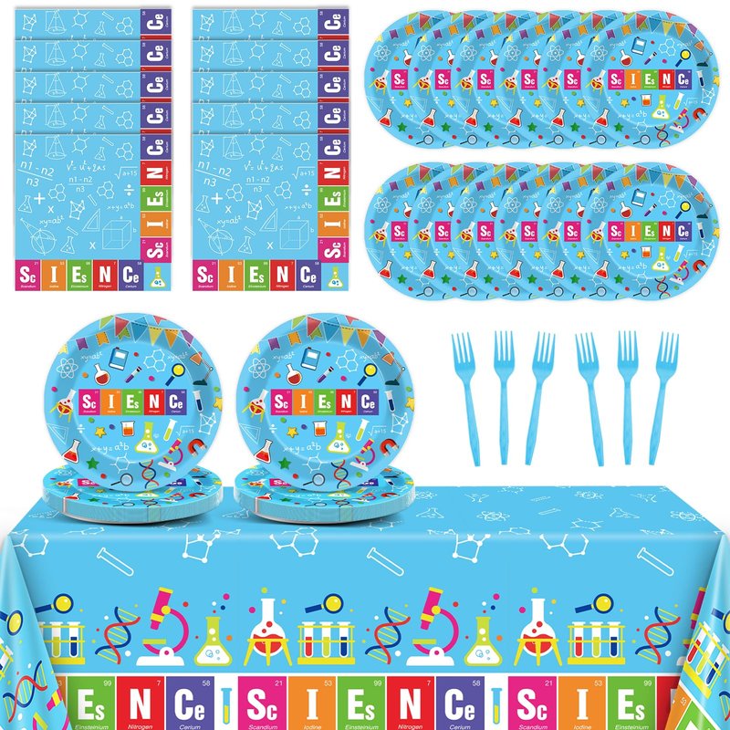 - Package includes: Science party supplies include 20pcs of 7-inch scientist party dinner plates, 20pcs of forks, 20pcs of scientist party napkins, 1pc of laboratory party tablecloth, providing everything you need to set the stage for a memorable and fun-filled celebration.