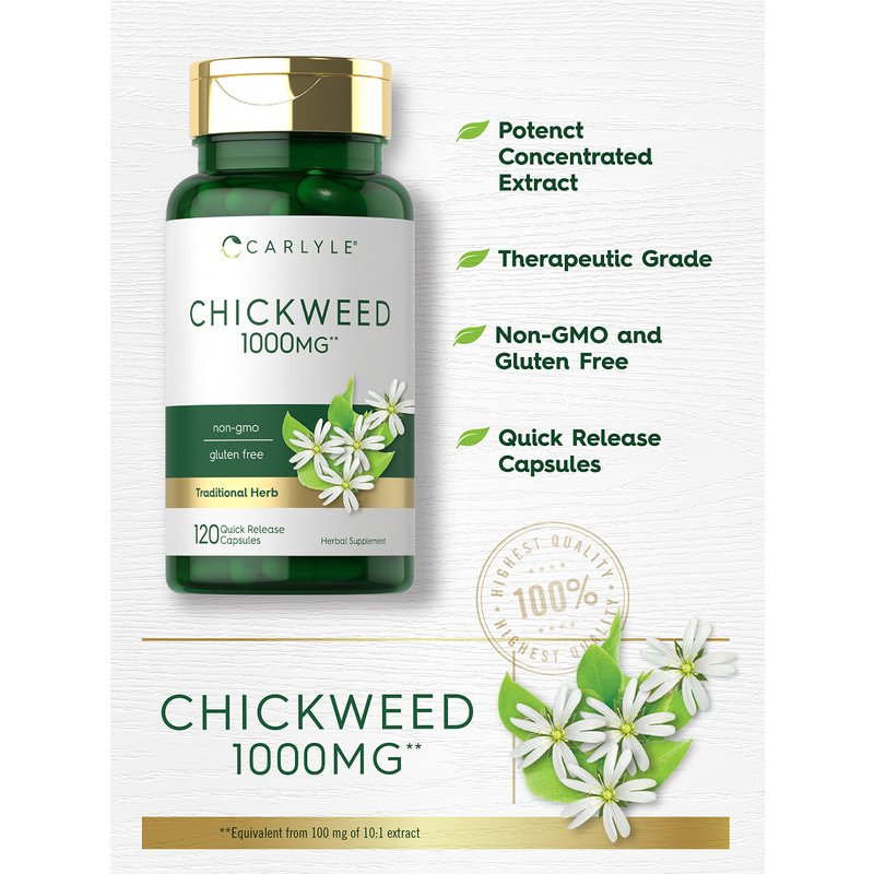 - TRADITIONAL FORMULA: The equivalent of 1,000 mg of Chickweed in each quick-release capsule