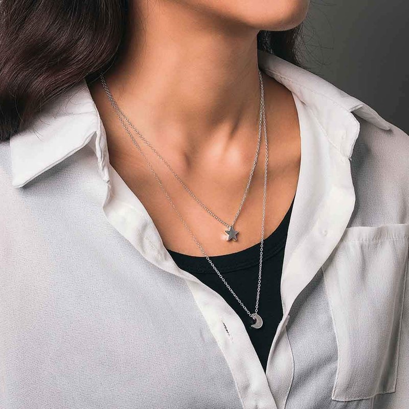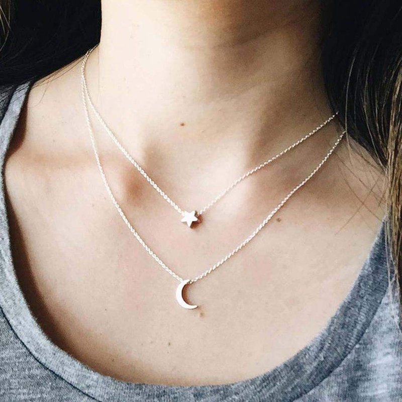 Chicque Bohemian Layered Necklace Moon Star Necklace Chain Long Pendant Necklaces Jewelry for Women and Girls (Silver)