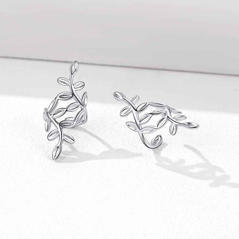 ChicSilver 925 Sterling Silver Minimalist Small Hoop Huggie Earrings Classic Leaf Ear Cuffs for Non Pierced Ears Cartilage Clip On Wrap Earrings Hypoallergenic